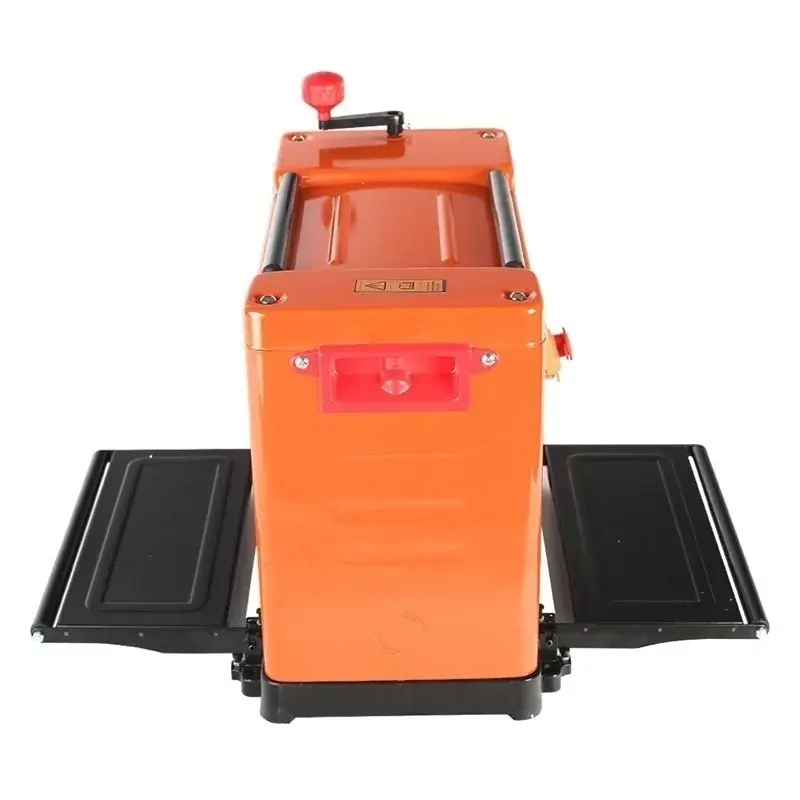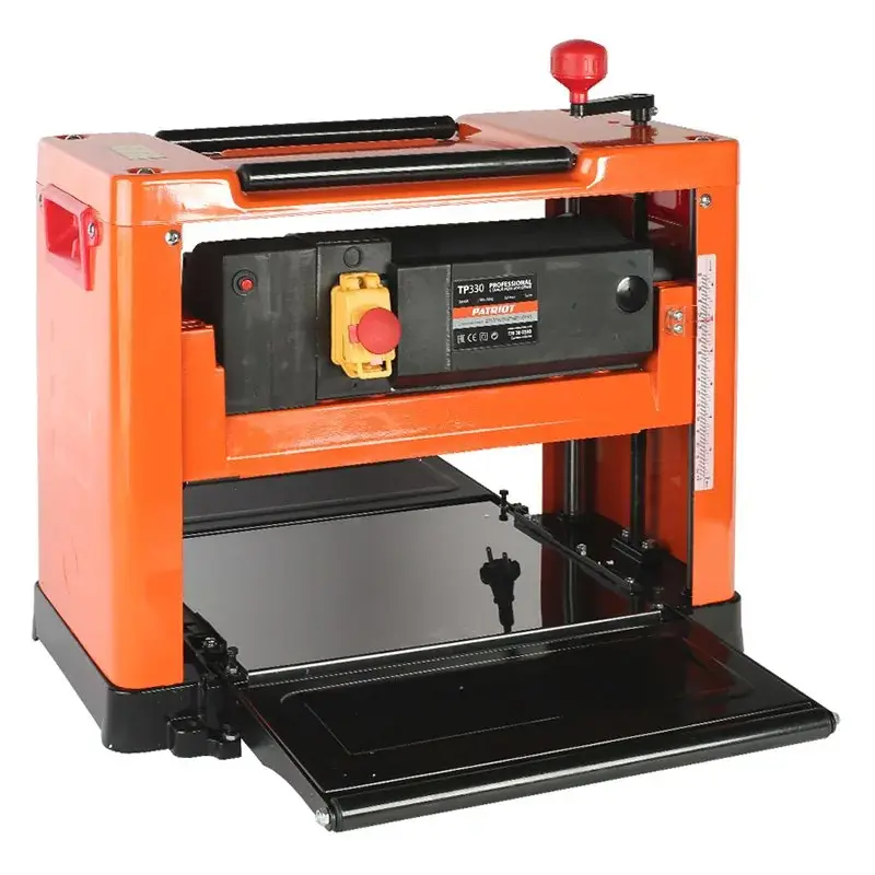 Рейсмусовый станок предназначен для чистового строгания деревянных досок под заданную толщину. Рейсмус пропускает доску через себя, строгая верхнюю часть широким валом с лезвиями. На выходе получается доска нужной толщины с ровной гладкой поверхностью. Диапазон заготовки, мм: 5-160