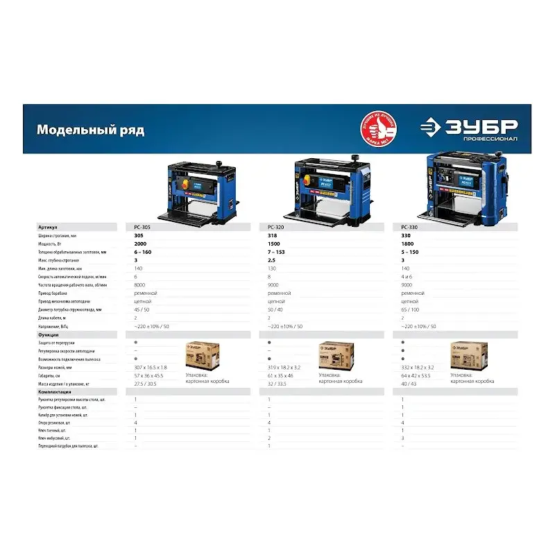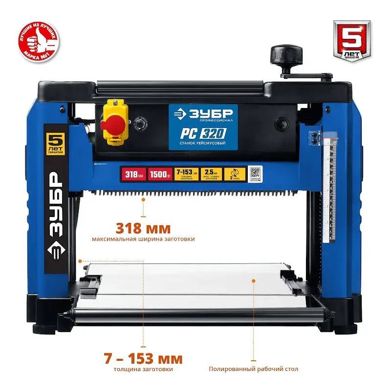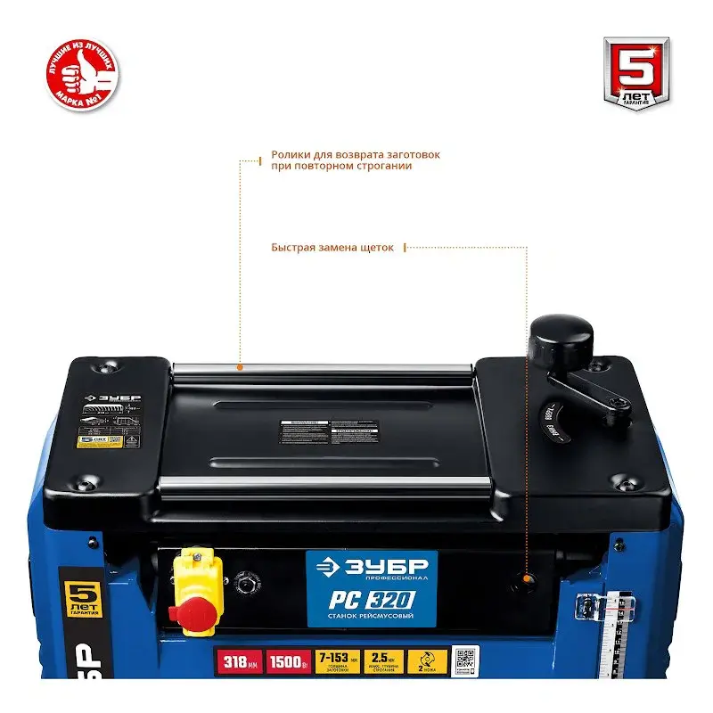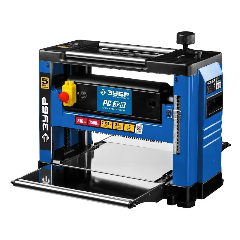 Рейсмусовый станок ЗУБР РС-320 – переносная модель для обработки заготовок из древесины шириной до 318 мм. Для комфортного использования предусмотрены удлинители рабочего стола, транспортировочные ручки и двигатель с системой защиты.