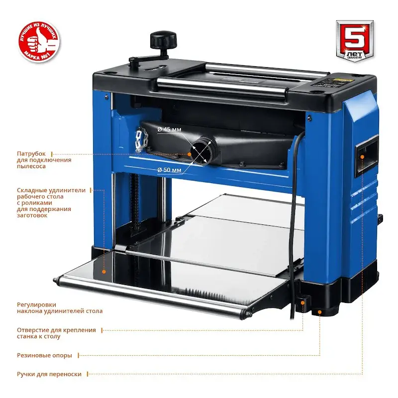 Для качественного строгания предусмотрено 2 ножа, которые изготовлены из быстрорежущей стали.