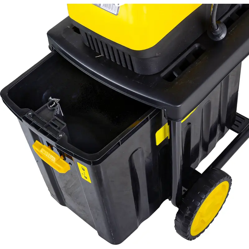 Электрический садовый измельчитель оснащен бесщеточным двигателем мощностью 2,8 кВт. Благодаря отсутствию щеточно-коллекторного узла мотор работает тихо, долго служит, не требует расходных материалов для техобслуживания. С системой плавного пуска устройство начинает работать без рывков. Встроенный предохранитель отключает питание в случае перегрузки.