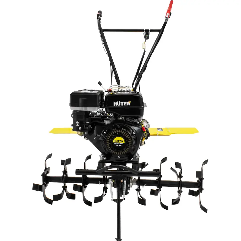 - Бензиновый 4-тактный двигатель мощностью 11 л. с. позволяет перепахивать тяжёлую влажную почву и целину.