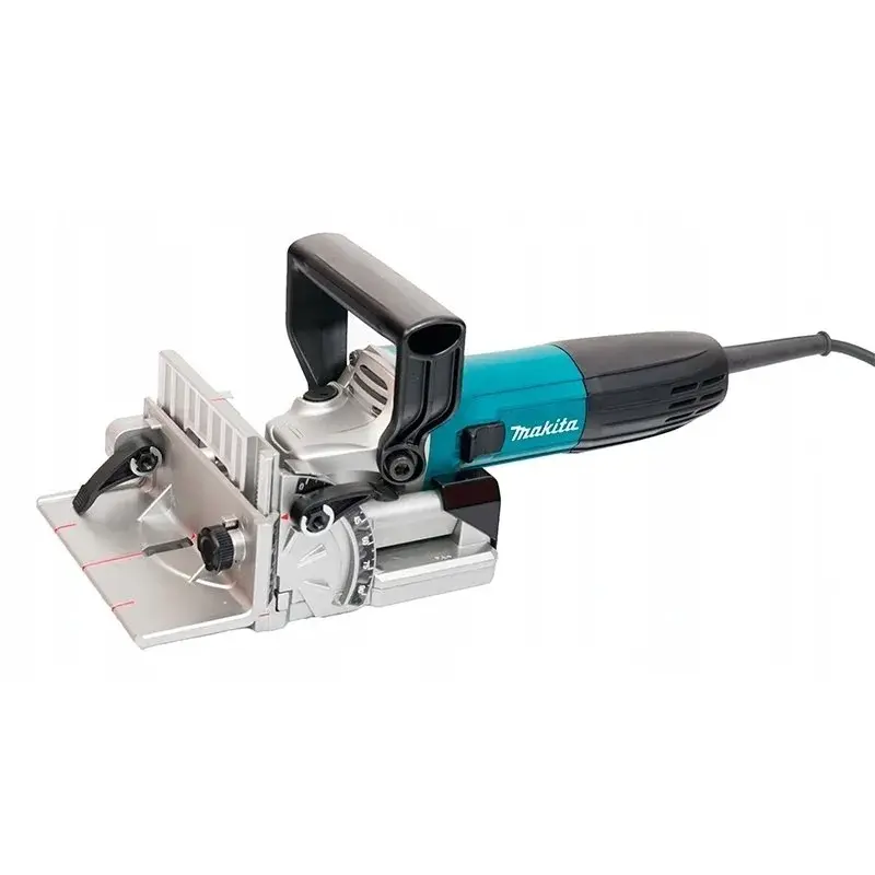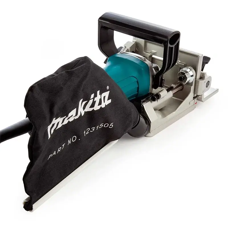 Шпоночный фрезер Makita PJ7000 позволяет настраивать глубину и угол обработки заготовки до значения в 20 мм. Инструмент поставляется с комплектом мешков для сбора пыли и защитным чехлом.