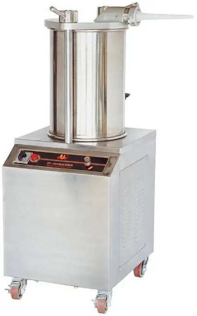 Шприц колбасный Hualian Machinery SF-150 предназначен для набивки фаршем всех видов оболочек (натуральных, коллагеновых, искусственных). Подходит для работы с любыми видами фарша – мясным, рыбным, овощным, смешанным. Используется для изготовления сосисок, сарделек, колбас, паштетов и другой аналогичной продукции в оболочке. Гидравлический привод обеспечивает плотное, равномерное заполнение оболочки, без пустот и неровностей. Это позволяет выпускать одинаковые по размеру и форме изделия с высокими эстетическими свойствами.Вертикальная конструкция занимает минимум рабочего пространства, поэтому шприц можно эксплуатировать даже в самых небольших производственных помещениях. Кроме того, при вертикальной загрузке, за счет естественной гравитации сырье легче перемещается книзу для заполнения оболочки.