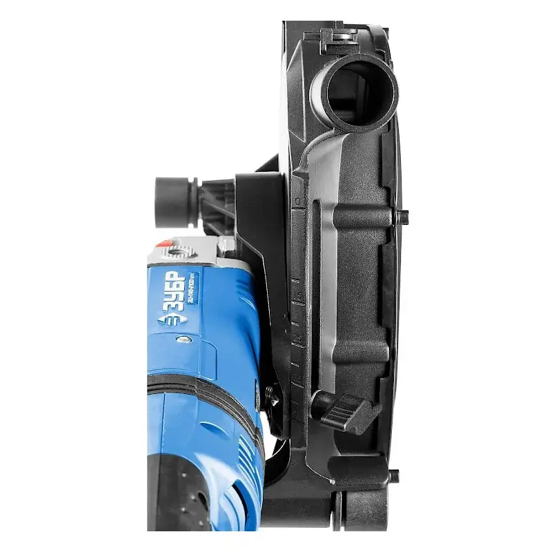 С помощью патрубка на корпусе бороздореза ЗУБР ЗШ-П65-2600 ПВСТК вы можете подключать пылесос, который приобретается отдельно. Это обеспечивает отвод пыли от зоны реза и контроль проведения работ.