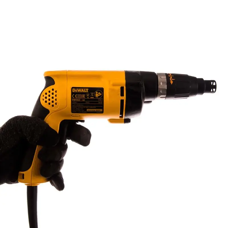 Шуруповерт DeWalt DW263K обладает мощностью 540 Вт. Подходит для работы с самонарезным крепежом максимальным диаметром 6,3 мм. Инструмент поставляется упакованным в кофр, в комплекте с магнитным держателем насадок.