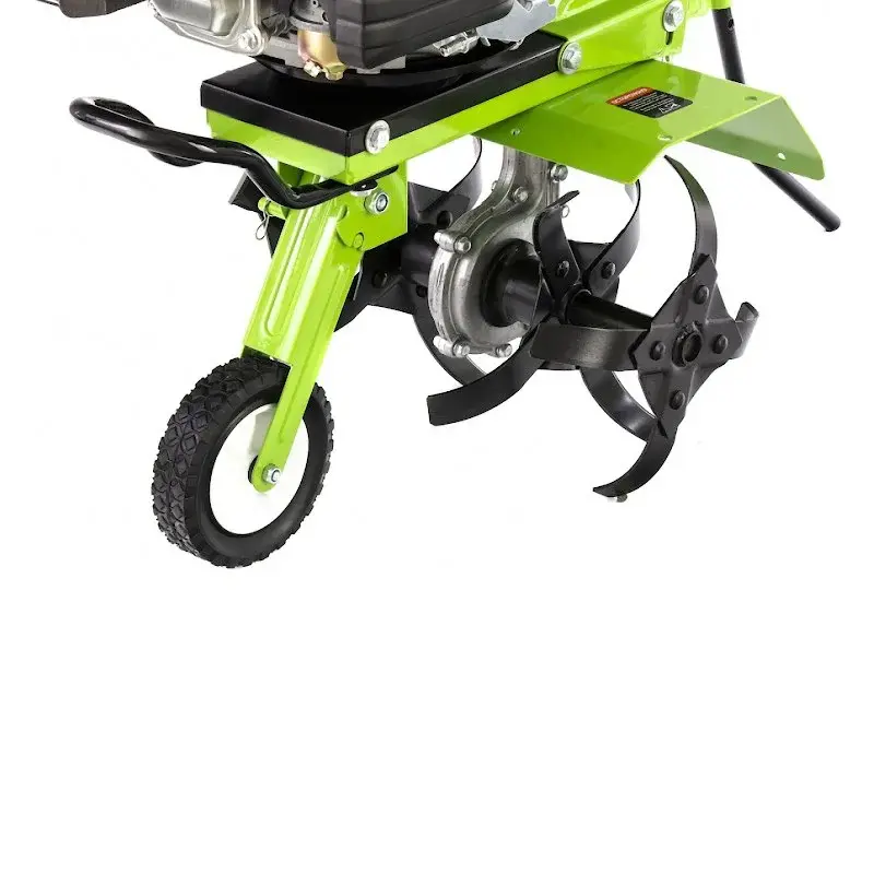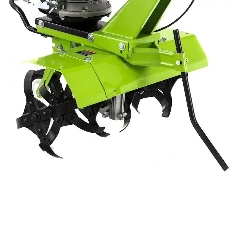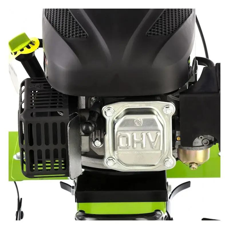 Обороты двигателя бензинового культиватора регулируются вручную. На выбор есть 2 режима: низкий и высокий. Это позволит настроить работу агрегата с учетом предполагаемой нагрузки.