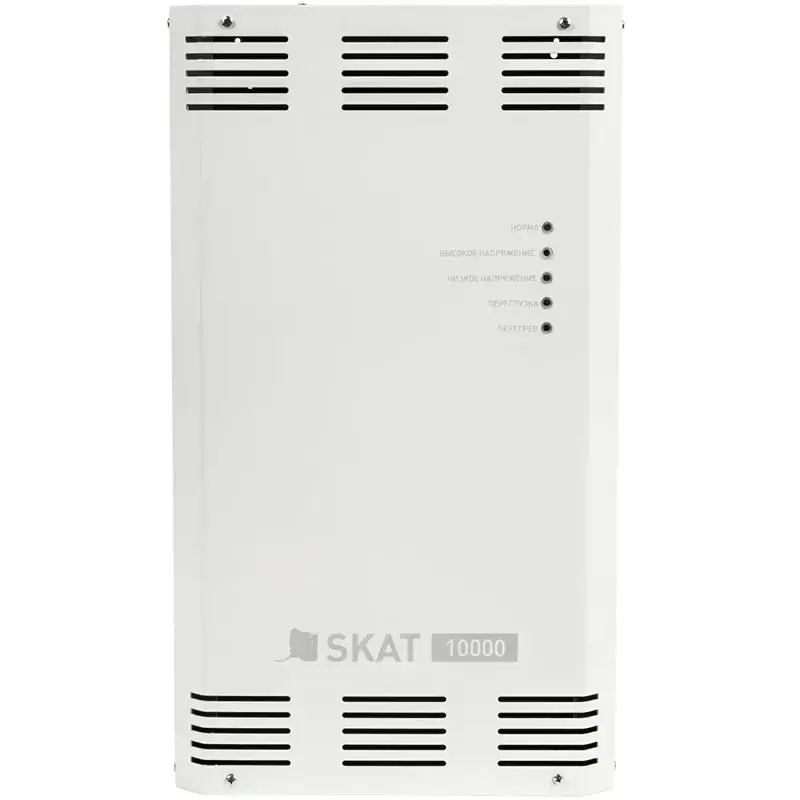 Стабилизатор напряжения SKAT ST-10000 обеспечивает качественное питание нагрузки в широком рабочем диапазоне входного напряжения от 140 до 275 В. Точность стабилизации составляет 7%; скорость переключения — 0,01 секунды. Изделие оснащено защитой от перегрева, перегрузки и короткого замыкания. Стабилизатор рассчитан на подключение к нему оборудования с потребляемой номинальной мощностью до 7000 Вт. Работает от питающей однофазной сети 220 В.