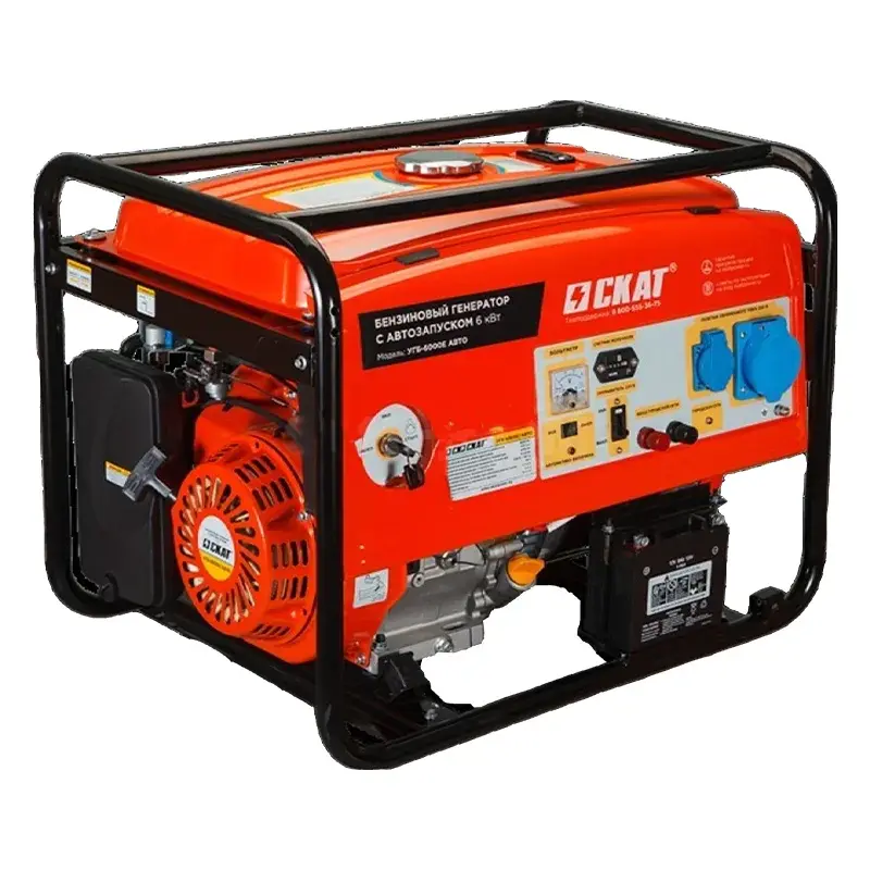Бензиновый генератор СКАТ УГБ-6000Е/АВТО мощностью 6 кВт представляет собой мобильное оборудование как для бытового, так и для профессионального использования. Служит источником питания различных приборов, когда нет возможности подключится к электросети.