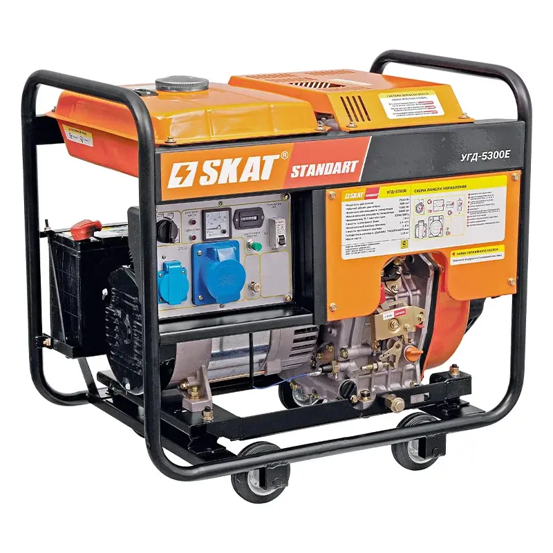 Дизельный генератор СКАТ УГД-5300Е мощностью 5,3 кВт обеспечит энергией дачу, коттедж, строительную площадку и станет отличным помощником владельцам мобильного бизнеса, горнопромышленникам, ремонтным бригадам.