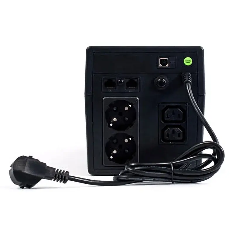ИБП с аккумулятором оснащен ЖК-дисплеем, на котором отображаются значения уровней выходного и входного напряжения, заряда аккумуляторной батареи и нагрузки. Наглядные пиктограммы состояния устройства и его режимов работы обеспечивают удобство контроля. При переходе к питанию от батарей, неисправности или низком заряде издаются звуковые сигналы. Если ИПБ, подключенный к электросети, выключить, устройство перейдет в режим ожидания, в котором будут заряжаться аккумуляторы. Время переключения на работу от батареи составляет 2–6 мс.