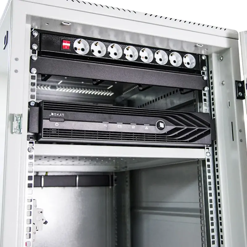 Разборная конструкция упрощает обслуживание ИБП. За счет съемных панелей можно устанавливать несколько комплексов в один ряд. Также вы можете дооснастить бесперебойник различными модулями. Например, осветительной панелью или вентиляторной установкой.