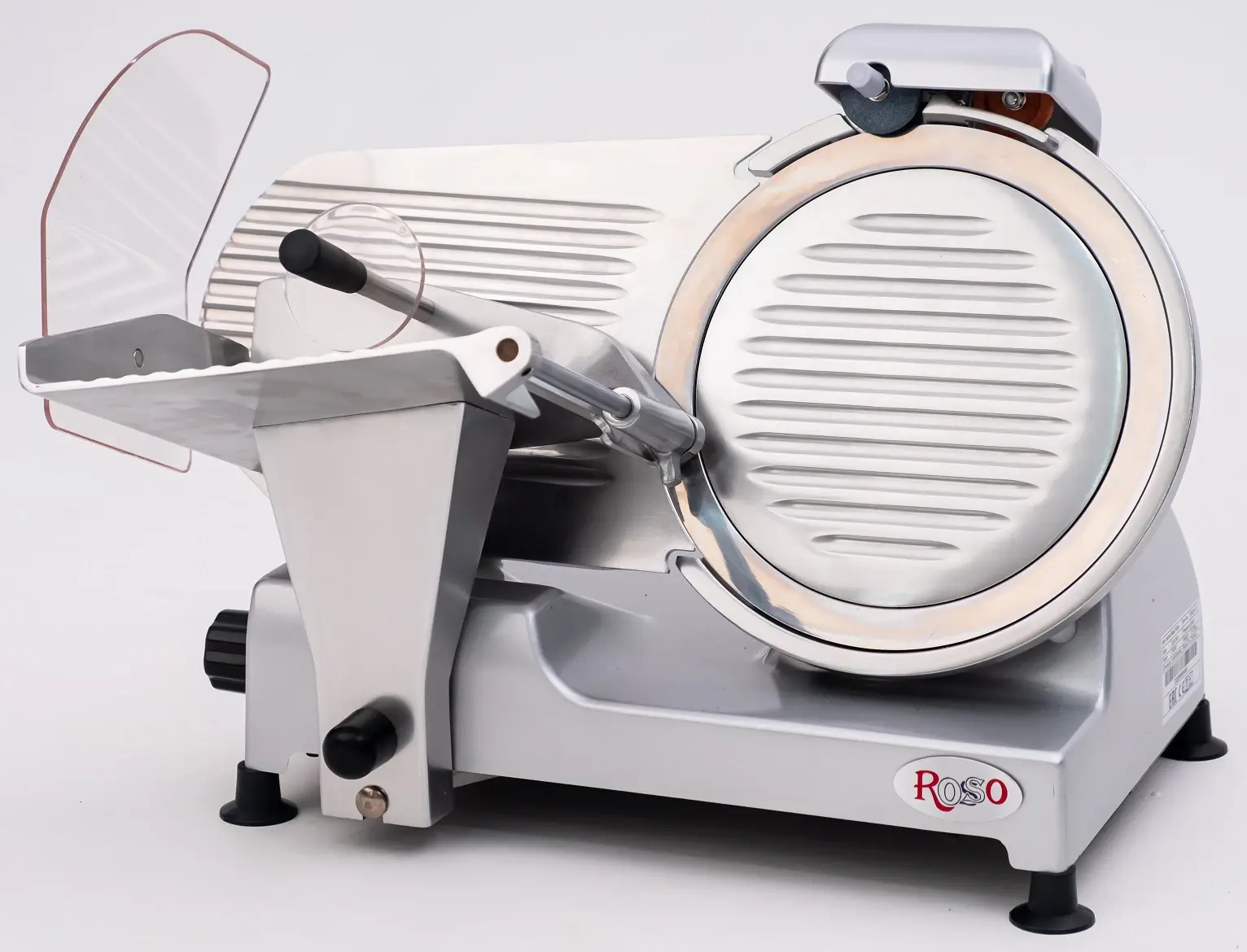 Слайсер Rosso 250ES-10 предназначен для нарезки мяса, сыра, колбасных изделий и других продуктов питания на ровные и равные ломтики на предприятиях общественного питания и торговли. Модель оснащена прижимным устройством, защитным кожухом и литым основанием.