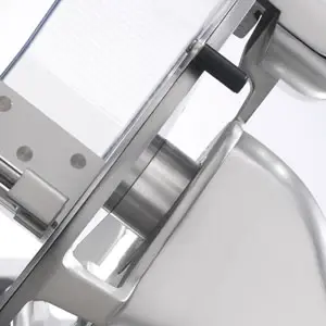 Плавная регулировка движения упорной пластины на первых 3 мм раскрытия обеспечивает повышенную точность при резке тонких ломтиков.
