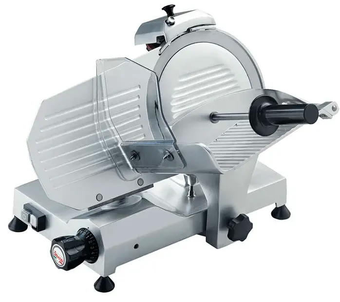 Слайсер Sirman Mirra 250 тефлон используется в сфере общественного питания и торговли для нарезки мясных деликатесов (колбас, ветчин) и твердых сортов сыра.