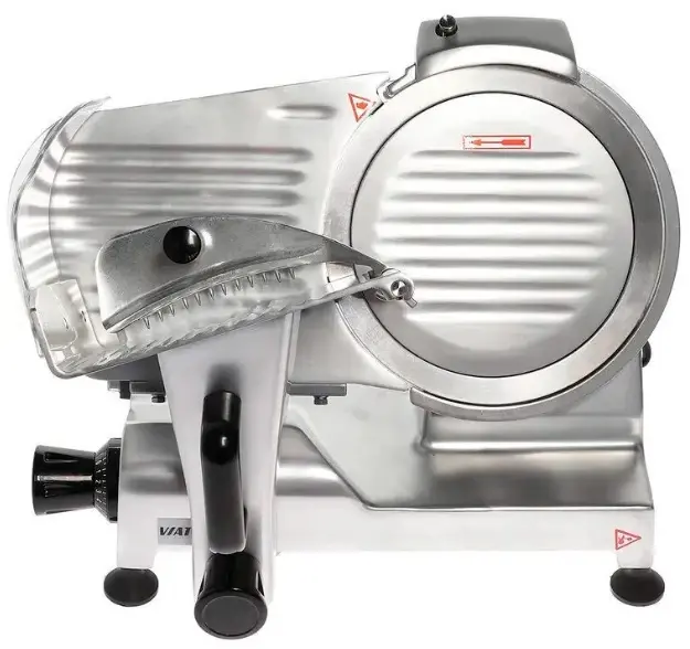 Высокоточный слайсер Viatto HBS-250, представленный на рынке китайским брендом, изготовлен из сплава магния и алюминия, оснащен режущим диском из нержавеющей стали. Прибор отличается простотой и безопасностью эксплуатации. Длина полезной режущей поверхности в 180 мм позволяет поварам использовать устройство для нарезания холодных закусок практически любых размеров.