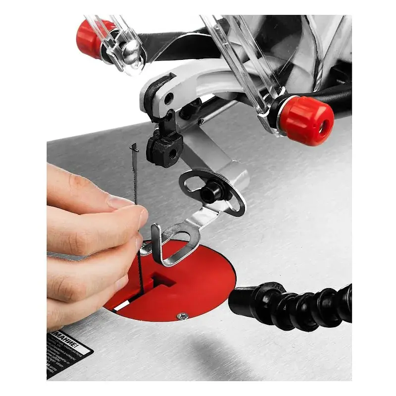 Рядом с гибким валом находится патрубок для отвода опилок и прочего мусора из-под пильного полотна. При необходимости можно подключить пылесос.