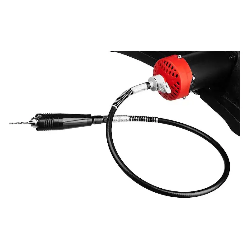 Гибкий вал позволяет адаптировать инструмент под сверление, шлифовку и гравировку. Диаметр патрона составляет 10 мм, благодаря чему можно установить оснастку разного размера.