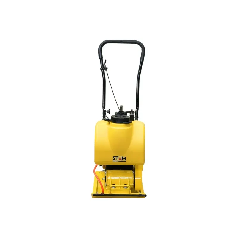 Виброплита STEM Techno SPC-162E оснащается мощным двигателем для эффективной работы. Конструкция комплектуется прочными крепежными элементами. Для укладки тротуарной плитки рекомендуется надевать резиновый коврик. Удобная съемная рукоятка упрощает транспортировку и управление движением плиты. Наличие бака для воды способствует повышению качества уплотнения грунта и обеспечивает высокую скорость работы.