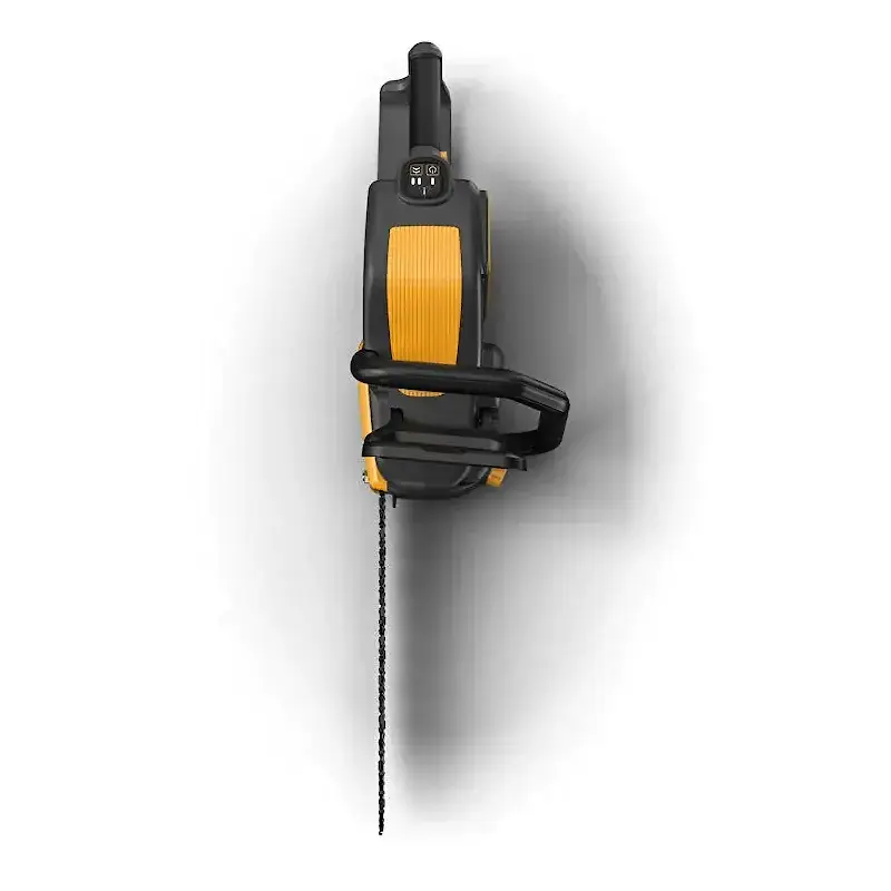 Натяжение цепи легко регулируется с помощью встроенной гайки сбоку крышки цепи. Используйте сенсорную панель для переключения скорости цепи: 16 м/с для экономии заряда аккумулятора или 20 м/с для плавной и быстрой резки.