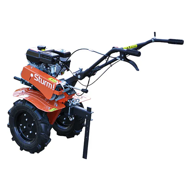 Мотоблок бензиновый Sturm! GK72CI10 - классическая модель с чугунным редуктором и колесами 4.00-10. Комплектуется 3-х ручейковым шкифом и двумя ремнями, а также передним кронштейном для навесного оборудования.