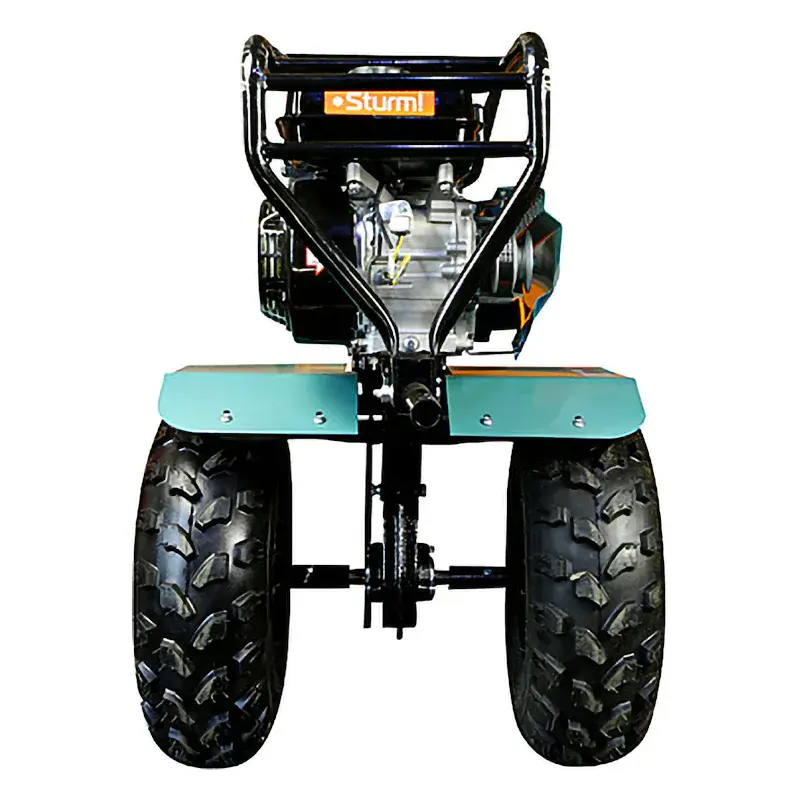 Мотоблок бензиновый Sturm! GK847CI19 — 3-х скоростная модель (понижающая, основная и повышающая) с чугунным редуктором и формованными крыльями, на внушительных колесах 19*7-8. Удобный руль с регулировкой вверх-вниз/влево-вправо.
