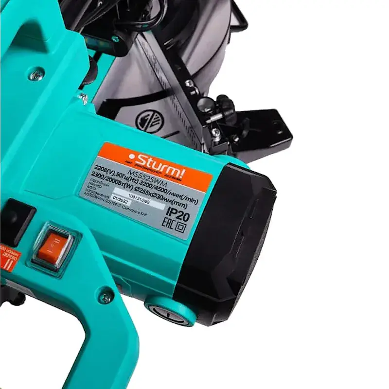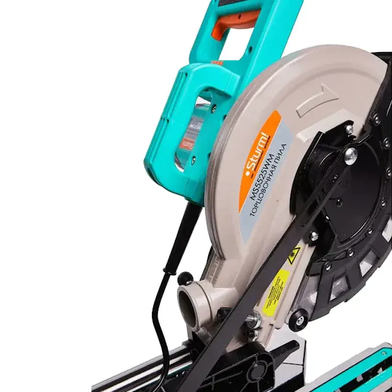Торцовочная пила Sturm! MS5525WM оснащена подпружиненным защитным кожухом, который обеспечивает безопасность оператора. К патрубку на корпусе можно подсоединить строительный пылесос для удаления древесных опилок и поддержания чистоты на рабочем месте. В комплектацию торцовки входят: пильный диск по дереву, прижимная струбцина для надежной фиксации заготовки, мешок-пылесборник, шестигранный ключ и руководство по эксплуатации.