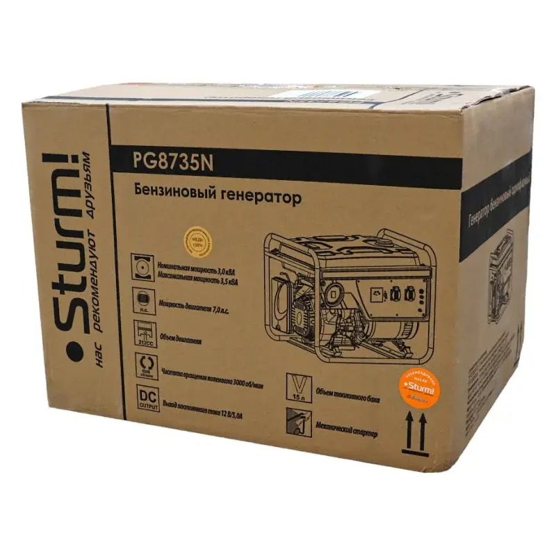 Однофазная бензиновая электростанция Sturm! PG8735N обладает мощностью 2,8 кВт. Генератор рассчитан на подключение большого количества потребителей и прекрасно справляется с питанием высоконагруженного оборудования. Аппарат может использоваться как резервный источник питания в загородном доме или дачном хозяйстве.