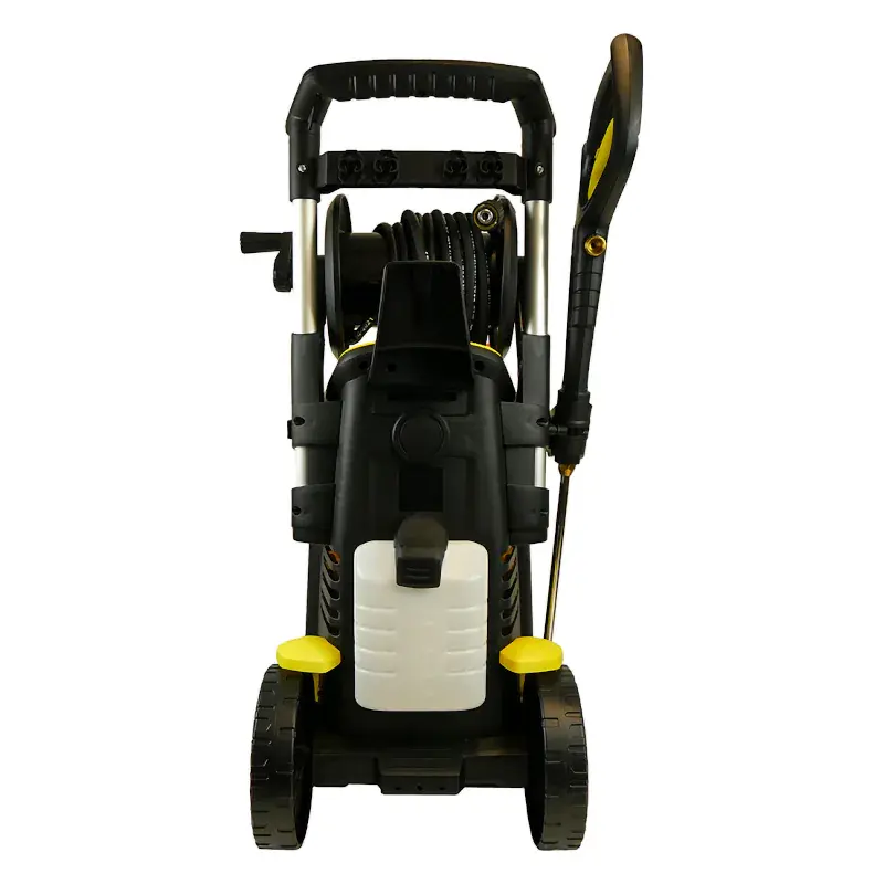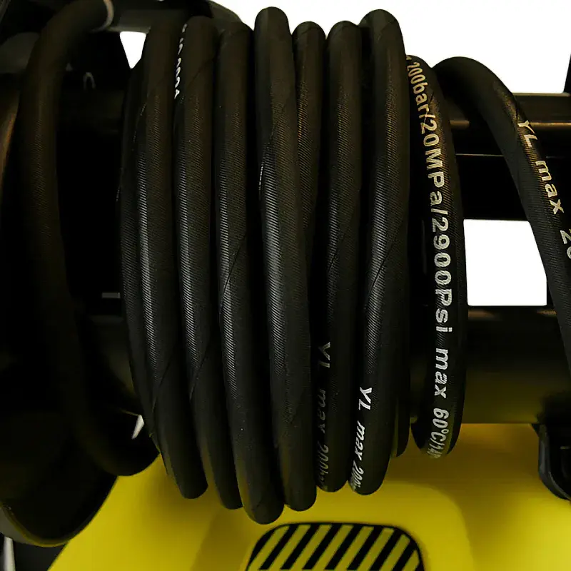 - Армированный восьмиметровый шланг высокого давления увеличивает рабочую площадь и комфорт работы.