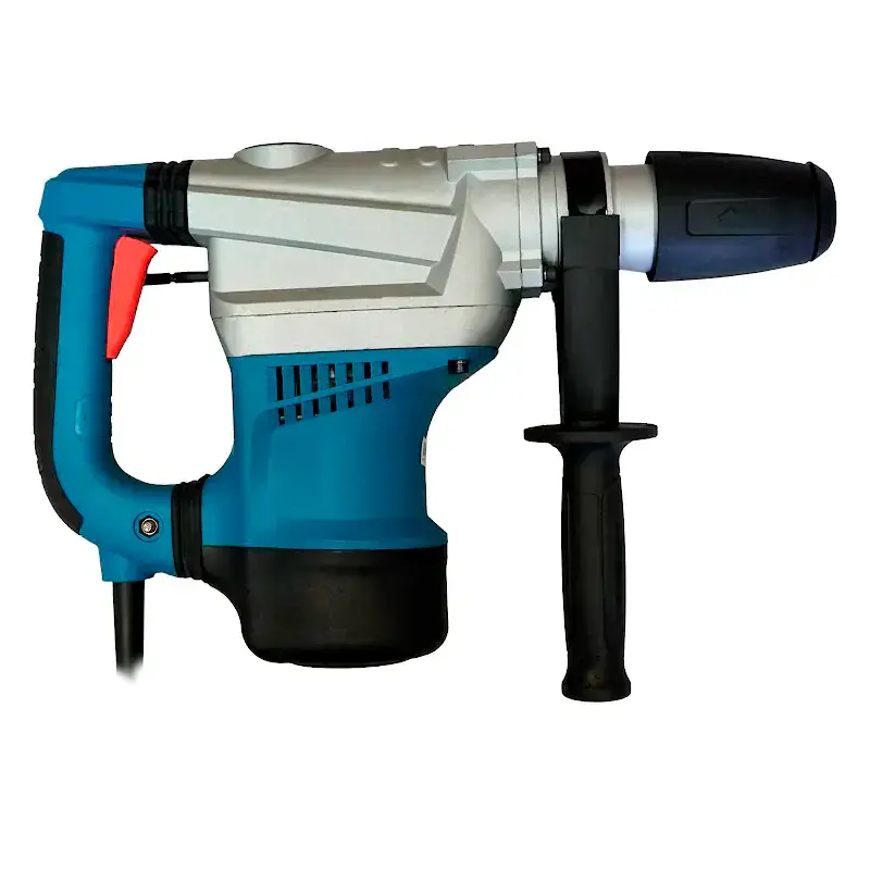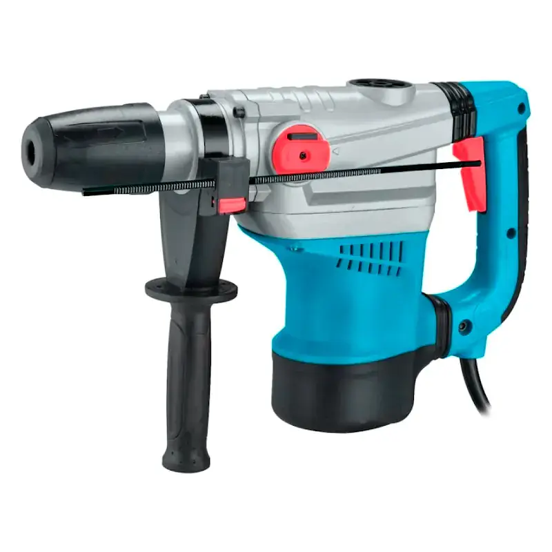 Сетевой перфоратор поддерживает два режима — сверление с ударом и отбойные работы. Смена оснастки выполняется мгновенно благодаря быстрозажимному патрону типа «SDS MAX». Предохранительная муфта защищает инструмент в случае заклинивания бура в материале. В комплект поставки входит ограничитель, с помощью которого можно сверлить глухие отверстия на заданную глубину. Для режима долбления предусмотрена дополнительная рукоятка с нескользящим прорезиненным покрытием, которая обеспечивает удобный хват и снижает вибрационную нагрузку на руки.