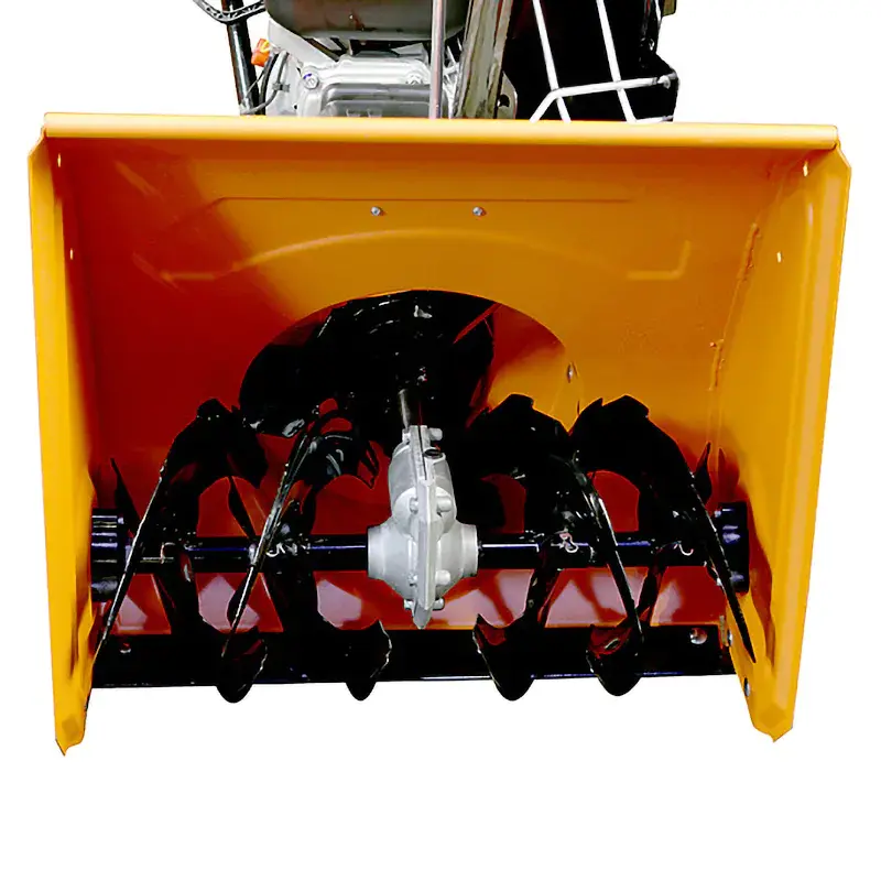 Большой ковш 53*51 см с полозьями скольжения обеспечивает внушительную ширину прохода и позволяет убирать сугробы до полуметра высотой. Агрессивные шнеки диаметром 250мм легко справляются со слежавшимся снегом и настом.
