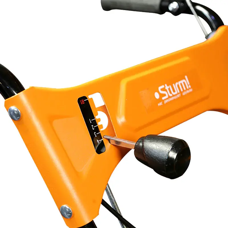 - Удобный рычаг управления желобом снегоотбрасывателя;