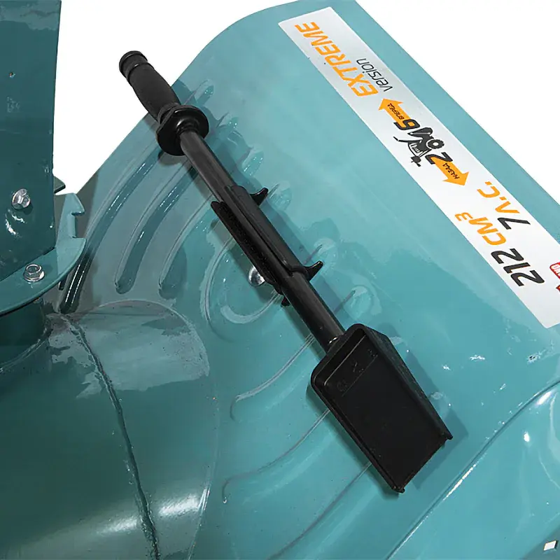 - Удобный рычаг управления желобом снегоотбрасывателя;