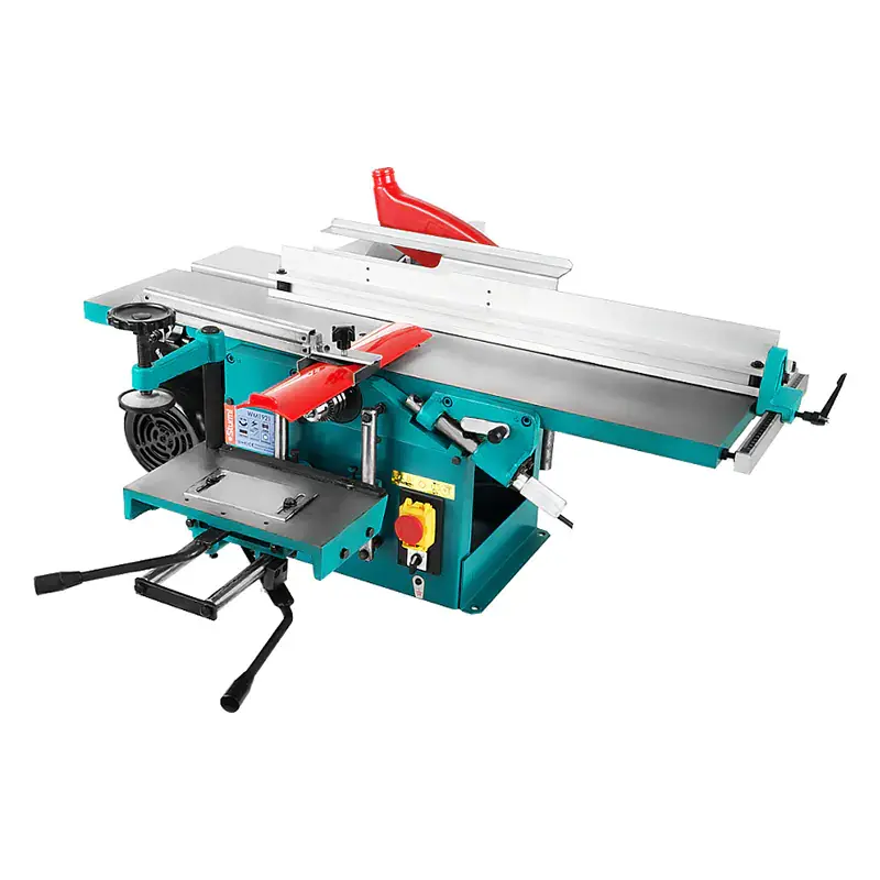 Максимальная глубина реза составляет 70 мм. При этом высокая мощность двигателя гарантирует быструю обработку даже твердых пород древесины. Максимальная ширина строгания достигает 200 мм, а глубина не превышает 3 мм. Механизм позволяет проводить фальцевание, сверлить заготовки, заменяет вертикально-сверлильный станок.