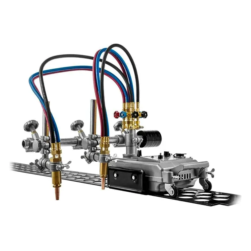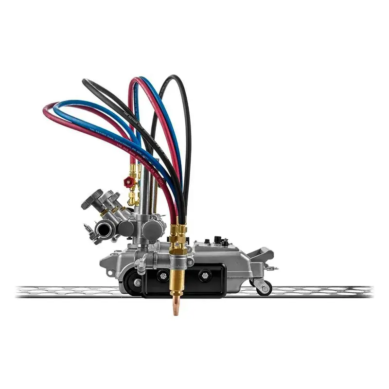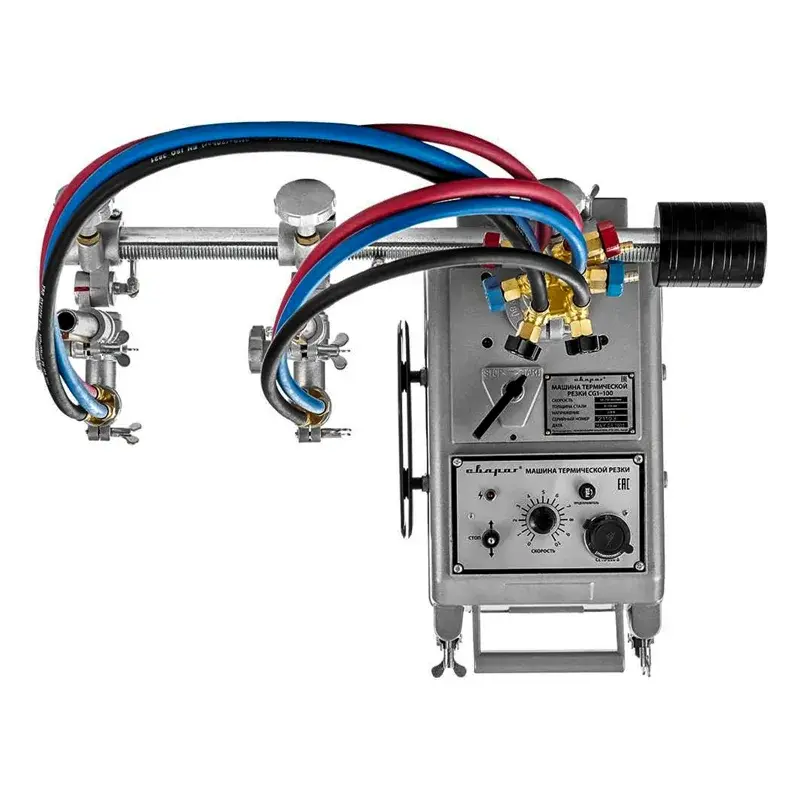 Резка выполняется двумя газокислородными резаками, установленными в держателях на самоходной тележке. Зажим крепления резаков для машин термической резки имеет реечный механизм, который позволяет перемещать резаки, регулировать их высоту установки над поверхностью металла, а также устанавливать угол наклона резаков в пределах ±45°. Положение резаков фиксируется винтами.