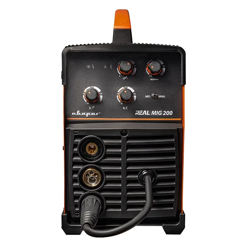 О состоянии сварочного полуавтомата Сварог REAL MIG 200 N24002N сообщают сервисные индикаторы, которые размещены на панели управления. Соответствующие лампочки загораются при перегреве, а также перегрузке по току.