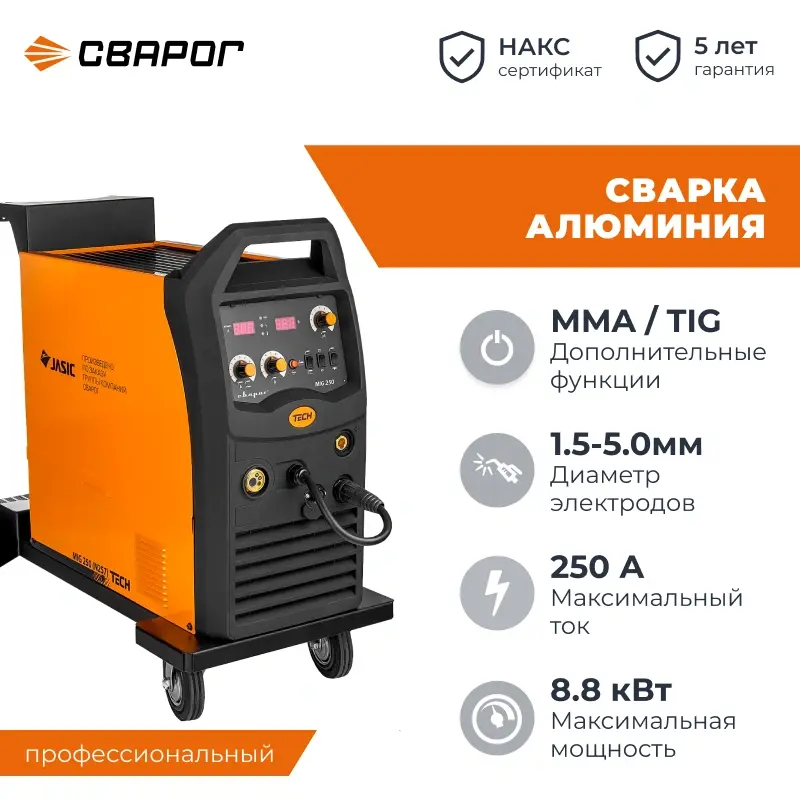 Сварочный инвертор TECH MIG 250 (N257) позволяет сваривать низкоуглеродистые, среднеуглеродистые, высокоуглеродистые, высоколегированные и нержавеющие стали, а также цветные металлы и сплавы. Способом сварки TIG Lift можно дополнительно работать с медными, бронзовыми, латунными, титановыми сталями и сплавами.