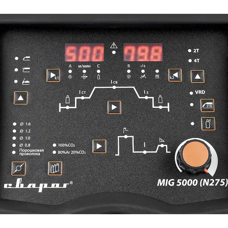 - Режимы сварки 2Т/4Т с синергетическими и ручными настройками;