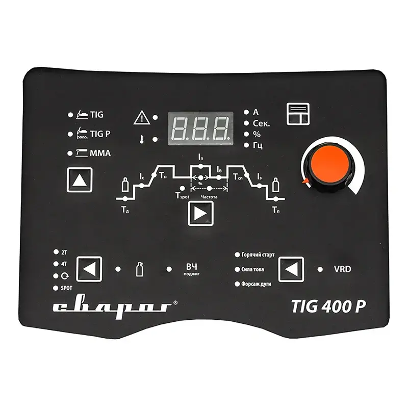 - Горячий старт, регулируемый форсаж дуги, отключаемый VRD для MMA сварки
