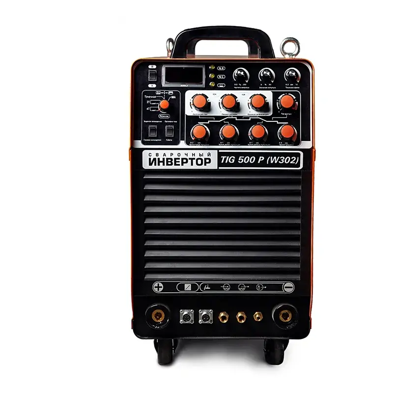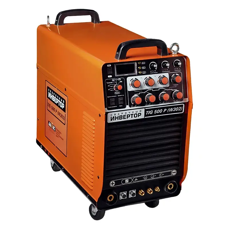 Аппарат серии STANDART TIG 500 P (W302) — промышленный сварочный инвертор для аргонодуговой сварки (TIG) с режимом импульсной сварки, ручной дуговой сварки покрытым электродом (ММА), оборудован цифровыми индикаторами параметров сварки и большим набором ручных регулировок.