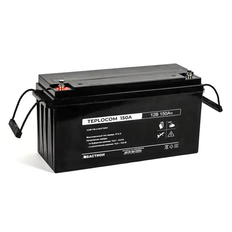 Аккумулятор герметичный свинцово-кислотный необслуживаемый TEPLOCOM 150Ач, производимый по технологии AGM, предназначен для использования в составе системы резервного питания.