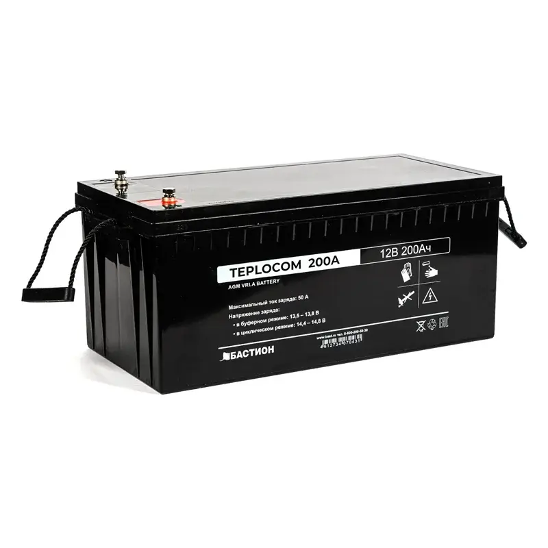 Аккумулятор герметичный свинцово-кислотный необслуживаемый TEPLOCOM 200Ач, производимый по технологии AGM, предназначен для использования в составе системы резервного питания.