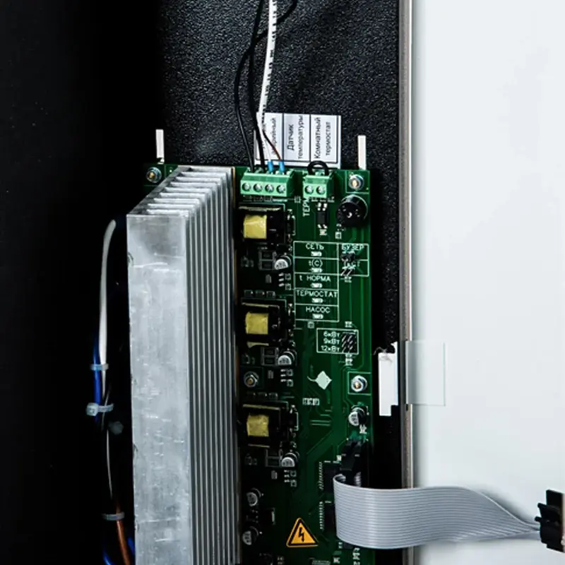 - SOS. В случае выхода из строя одного ТЭНа или симистора управления котёл продолжает работать на оставшихся ТЭНах, сигнализируя о проблеме.