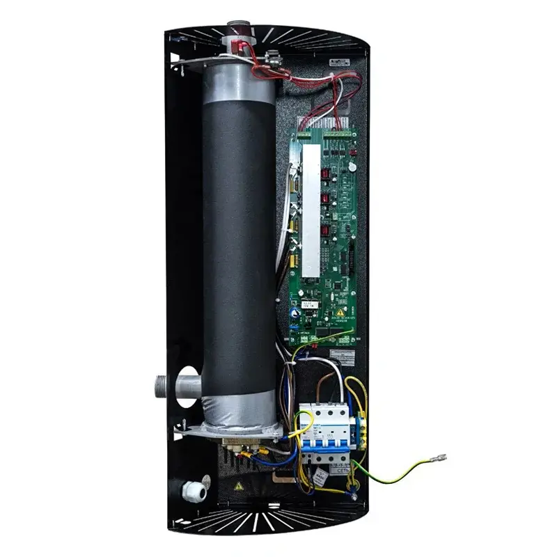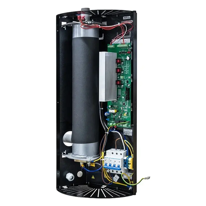 В котле применяется микропроцессорное управление нагревом и модуляцией мощности, которое снижает расход электроэнергии. Технология i-TRM обеспечивает плавный пуск во избежание просадки напряжения в сети. Попеременное включение нагревательных элементов при неполной нагрузке способствует равномерному расходу ресурса всех ТЭНов. Система самодиагностики котла Teplodom i-TRM SILVER StS-6 работает в автоматическом режиме, позволяя своевременно выявлять потенциальные неисправности. Благодаря симисторам ТЭНы переключаются совершенно бесшумно и предварительно прогреваются перед выходом на полную мощность.