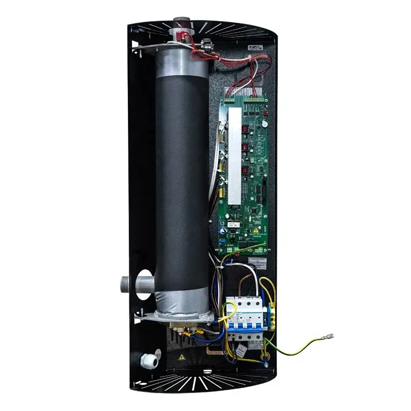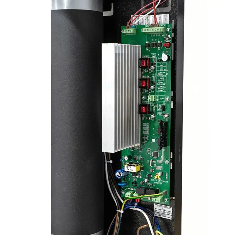 В котле применяется микропроцессорное управление нагревом и модуляцией мощности, которое снижает расход электроэнергии. Технология i-TRM обеспечивает плавный пуск во избежание просадки напряжения в сети. Попеременное включение нагревательных элементов при неполной нагрузке способствует равномерному расходу ресурса всех ТЭНов. Система самодиагностики котла Teplodom i-TRM SILVER StS-9 работает в автоматическом режиме, позволяя своевременно выявлять потенциальные неисправности. Благодаря симисторам ТЭНы переключаются совершенно бесшумно и предварительно прогреваются перед выходом на полную мощность.