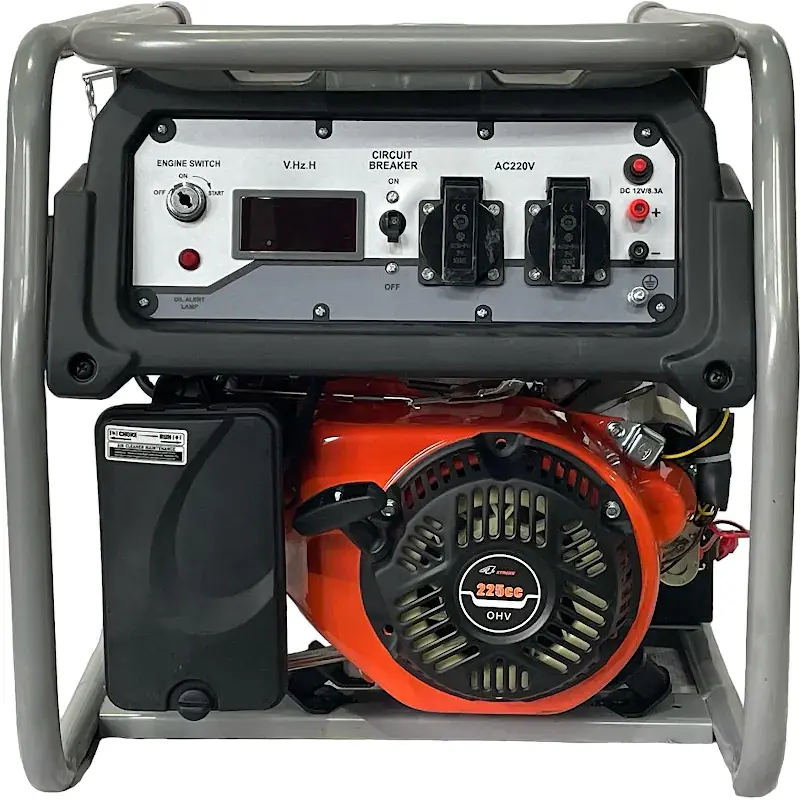 Для легкого и быстрого запуска предусмотрен электрический стартер. На лицевой панели расположены две розетки 220 В для подключения бытовой техники, систем освещения и других потребителей.