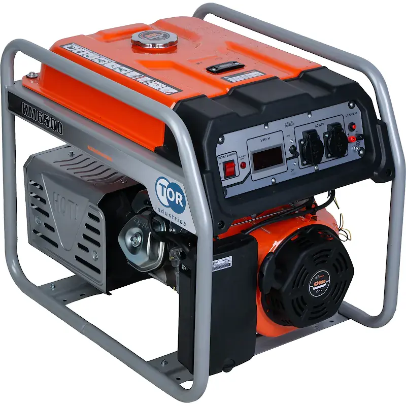 Генератор бензиновый TOR KM6500H 5,0кВт 220В 33л с ручным запуском. Модель генератора мощностью 5кВт с запасом обеспечит электроэнергией загородный дом, небольшую производственную площадку или строительный участок. Вместительный бак на 33 литров бензина и время непрерывной работы 9ч обеспечат потребителя стабильным током напряжением 220в на продолжительное время. Конструкция с ручным запуском делает модель доступной по цене. Прочная конструкция рамы убережет рабочие механизмы при транспортировке.