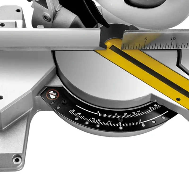 Торцовочная пила DeWALT DWS778 с мотором мощностью 1850 Вт позволяет распиливать изделия из древесины, пластика, алюминия и других цветных металлов как поперек, так и под углом: со скосом и наклоном. Максимальная глубина реза под прямым углом составляет 85 мм, под углом 45° — 45 мм. Для работы подойдут режущие диски диаметром 250 мм с посадочным диаметром 30 мм и зубьями с твердосплавными напайками.