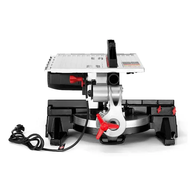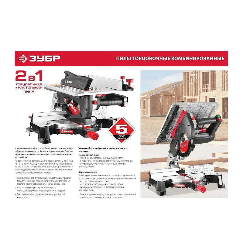 Комбинированная система позволяет быстро переключаться между типами работ. Для обработки небольших заготовок присутствует опорный поворотный стол. Для распиливания крупногабаритных досок применяется рабочая поверхность в верхней части корпуса. Обе конструкции оснащены необходимыми функциями и механизмами для выполнения конкретных работ - регулировка высоты пиления, наклона и т.д.