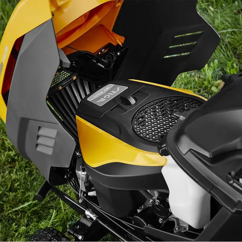 - Садовый трактор для стрижки газонов STIGA Tornado 2108 HW оснащен недавно разработанным четырехтактным двигателем STIGA с воздушным охлаждением объемом 586 куб. см. Благодаря своей V-образной двухцилиндровой конструкции он выдает мощный крутящий момент и уменьшает вибрацию. Новая конструкция двигателя также обеспечивает минимальную рабочую температуру и продлевает срок службы.