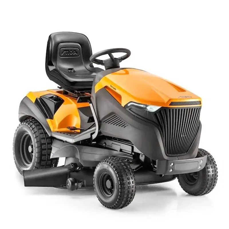 Садовый трактор Stiga Tornado 5108 H 2T1825281/17 Новинка 2019 года с двигателем Briggs&Stratton Intek 4185 AVS Series 500 куб.см. и шириной кошения 108 см., имеет гидростатическую трансмиссию, которая обеспечивает чрезвычайно плавное изменение скорости и превосходный комфорт во время вождения. Скорость управляется одной педалью, для переднего и заднего хода. Новый дизайн, удобное сиденье и мягкое рулевое колесо, оснащенный, снежным отвалом, вы можете пользоваться газонокосилкой круглый год, а благодаря светодиодным фарам очистка от снега и кошение вечером всегда безопасно даже в темное утреннее и вечернее время. Садовые тракторы Stiga - идеальный выбор для выполнения любых сложных работ в саду, от кошения и сбора травы до ее мульчирования и разбрасывания в качестве удобрения. В моделях Estate скошенная трава пролетает от деки в большой травосборник, по прямому тоннелю, а большой портал бокового выброса, установленный на тракторах Tornado, обеспечивает равномерное распределение травы на газоне. Новый капот Stiga был модернизирован для увеличения мощности и срока службы двигателей путем оптимизации количества всасываемого под капот воздуха. Капот оснащается светодиодными фарами чтобы окончание стрижки газона всегда было комфортным. Непревзойденный дизайн садового трактора, дополняет современный функционал трактора, который является лучшим в своем классе. Приборная панель с LED дисплеем. Чугунный передний мост. Преимущества садового трактора Stiga Tornado 5108 H: Бензиновый одноцилиндровый двигатель Briggs&Stratton Intek 4185 AVS Series 500 куб.см. (США) - Мощный и надежный мотор от мирового лидирующего производителя, имеющий длительный срок службы. Запатентованная антивибрационная система AVS обеспечивает более плавную работу двигателя, поэтому срок его службы выше, чем у моделей традиционной конструкции. Чугунная гильза цилиндра повышает износостойкость. Верхнее расположение клапанов (OHV) также увеличивает ресурс и снижает расход топлива. Гидростатическая трансмиссия HST - гидростатическая трансмиссия облегчает контроль скорости без использования рычагов или переключения передач. Плавное регулирование скорости переднего и заднего хода одной педалью. Комфортное управление и плавность хода обеспечивает гидростатическая трансмиссия. Регулировка скорости передвижения производится с помощью специальных педалей. Чугунный передний мост - Для максимальной прочности садовый трактор комплектуется чугунной поворотной передней осью. Режущий механизм шириной 108 см и 3 колеса на деке - предотвращающие повреждение дерна. Дека с двумя ножами, системой регулировки высоты кошения с семью фиксированными положениями (от 30 до 90 мм), а также системой электромагнитного сцепления режущего механизма. Боковой выброс - Этот садовый трактор поддерживает функцию бокового выброса. Светодиодные фары и передний бампер - очистка от снега и кошение вечером всегда безопасно даже в темное утреннее и вечернее время. Благодаря передним фарам этот садовый трактор можно использовать даже в темноте. Зарядное устройство и система мульчирования входят в комплект поставки - В режиме мульчирования одновременно со стрижкой производится удобрение территории. При мульчировании трава измельчается в мельчайшие частицы и разбрасывается на газоне. Разлагаясь, измельченная трава удобряет газон. Сцепное устройство - в ком